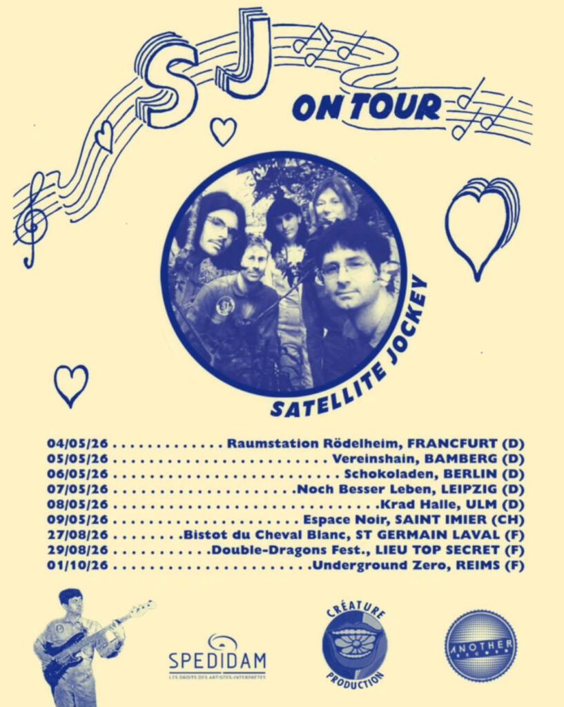 Es wird langsam aber sicher endlich mal Frühling, was gibt’s denn da besseres als auf der Insel in der Raumstation Rödelheim dem ausgezeichneten Psych-Pop Quintett Satellite Jockey aus Lyon zu lauschen. Wenn ihr auch so viel Bock habt wie wir bei ein oder zwei Cola zu den poppig-experimentellen Sounds der sympathischen Truppe abzugehen oder einfach nur gespannt seid, wie um alles in der Welt fünf Leute und ihre Instrumente auf die winzige Bühne in der Raumstation passen, dann kommt doch gerne vorbei. Support gibts von den Lokalmatador*innen Toyboys! Da ist der Start in die Woche doch perfekt. Bringt eure friends und supportet eure lokale DIY Show 🙂